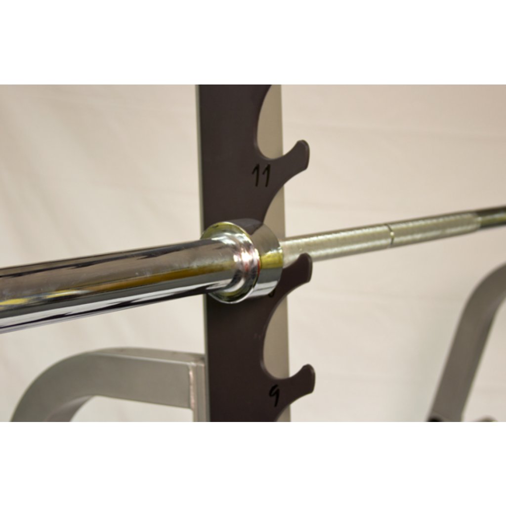 Multipress Body Solid je dřepovací a tlakový stojan s nosností 450 kg. Na tomto skvělém stojanu se 14 pozicemi můžete trénovat s více než 450 kg. Dřepy a bench press můžete provádět s bezpečnostními podpěrnými stojany, takže vám vůbec nepřekážejí. Velké ocelové bezpečnostní zámky vám pomohou více chránit vaše tělo před zraněním. Pevné ocelové zarážky udrží půl tuny.