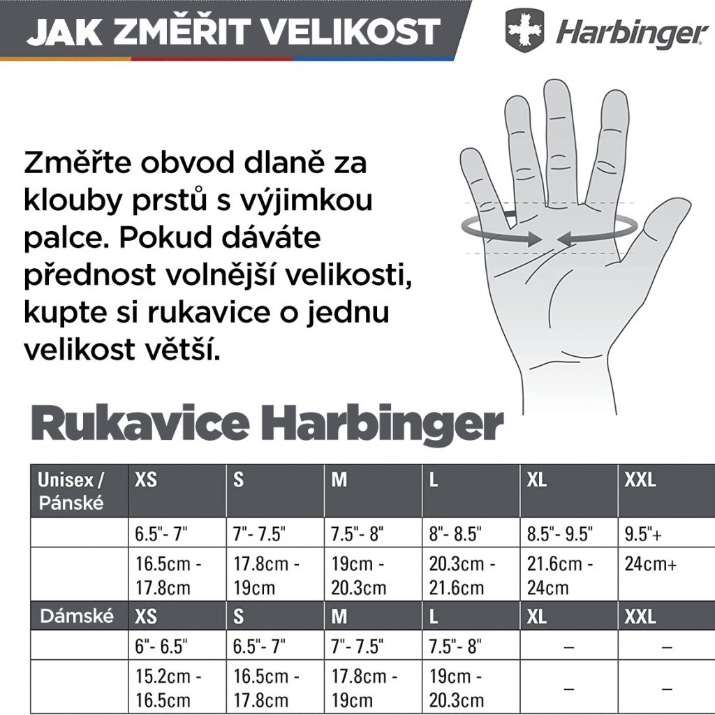 Změř si obvod dlaně těsně pod klouby, bez započítání palce. Rukavice Harbinger jsou navrženy tak, aby pevně seděly – jde o přiléhavý střih, který zajišťuje maximální oporu při tréninku.