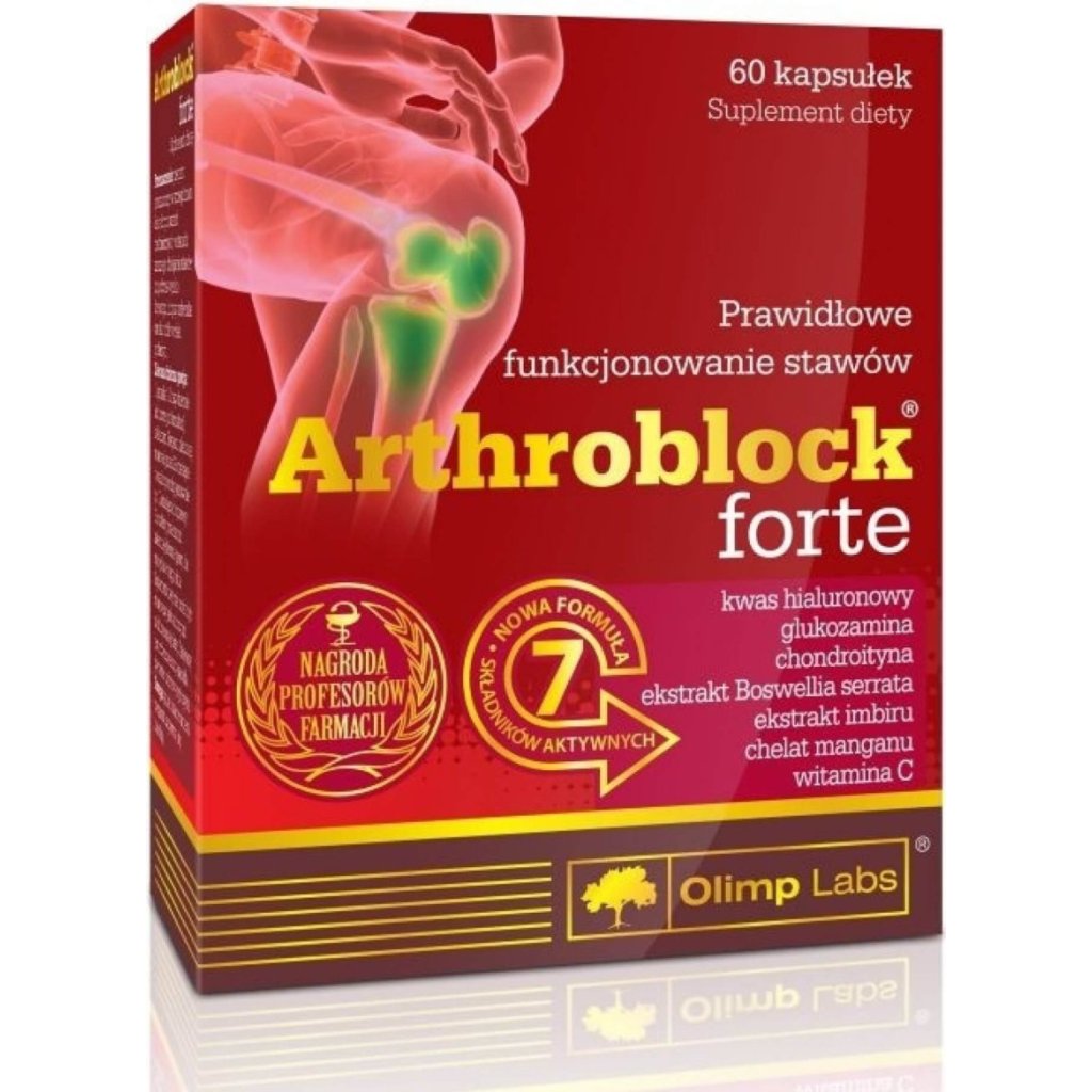 Doplněk stravy Arthroblock Forte Sport Edition od Olimp Sport Nutrition je směs vysoce kvalitních složek, jako je glukosamin a chondroitin sulfát, kyselina hyaluronová, výtažky z kadidla a zázvoru, obohacená o další vitamín C a mangan.