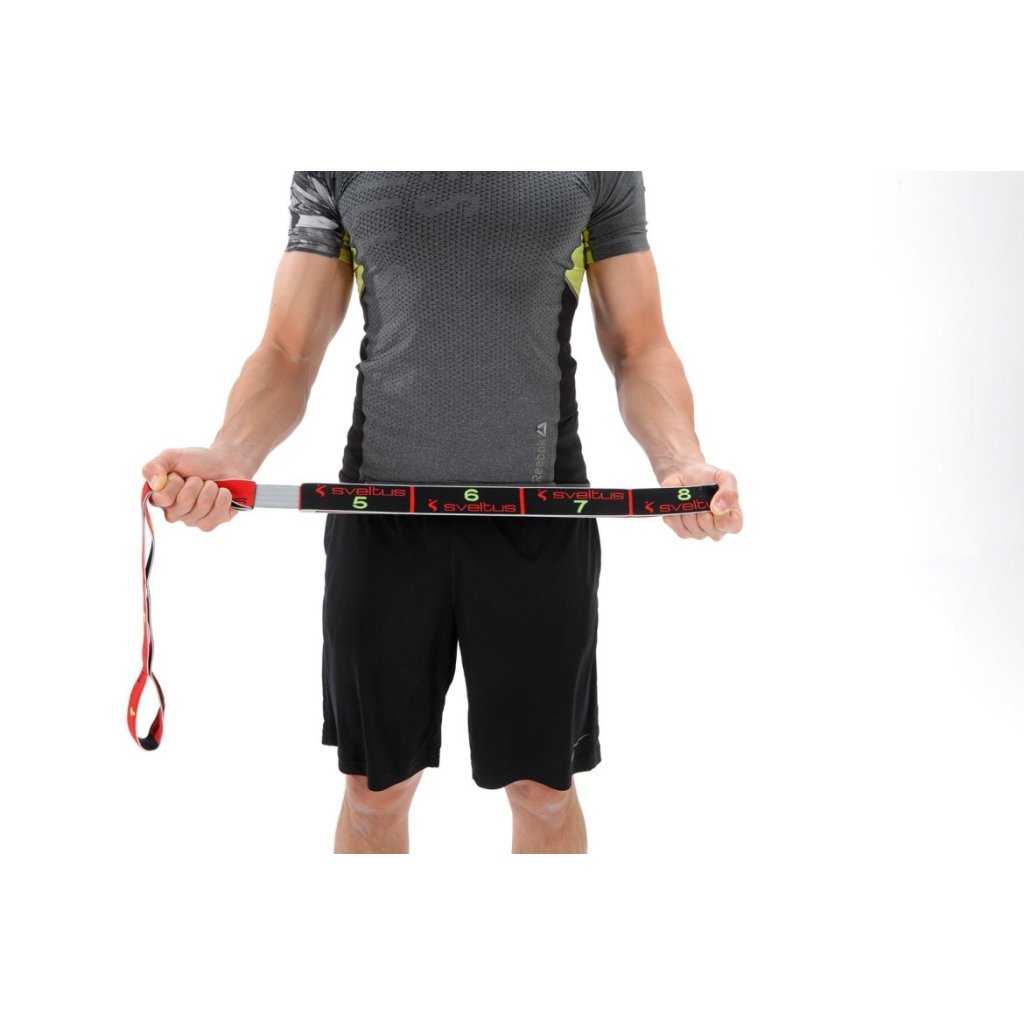Guma Sveltus Elastiband, 3 Resistance (10/12/15 kg) je 95 cm dlouhá, 4 cm široká a váží 80 gramů. Guma má tři nastavitelné odpory - 10, 12 a 15 kilogramů.