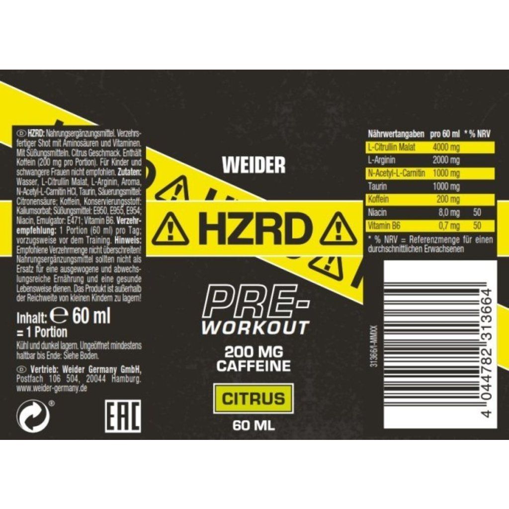 Složení Weider HZRD shot